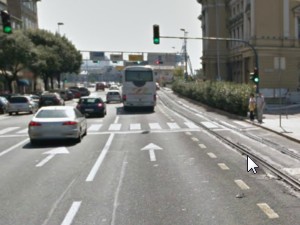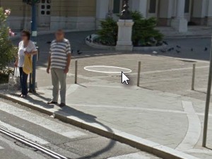 ![]() Če želimo se lahko tudi premikamo po ulici in sicer tako, da miško pomaknemo na poljubno mesto in pritisnemo gumb. |