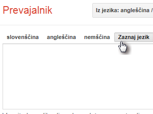![]() V levo polje lahko sedaj vnesete besedilo, katerega želite prevesti. |