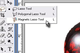 S tem ukazom smo vse layerje združili. Potem pa izberite Magnetic Lasso Tool. Izberite Lasso Tool (bližnjica je tipka L) in držite z miško na njemu, dokler se vam ne prikažejo ostala orodja. |