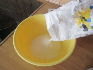 V tem primeru bom naredil maso za osem tortilij, kar je več kot dovolj za dve osebi. V posodo dodajte 250g moke. |