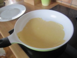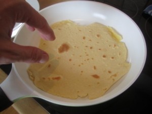 Po dobri eni minuti tortiljo obrnite in jo pecite še na tej strani toliko časa. Vaja dela mojstra, meni prva ni najbolje uspela, ostale pa so bile super.