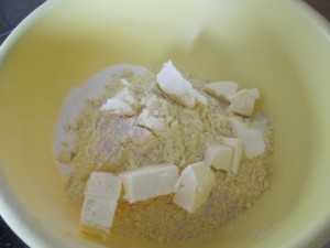 In nato 80g masla. Naj bo maslo na sobni temperaturi, saj ga drugače ne boste mogli gnesti. |