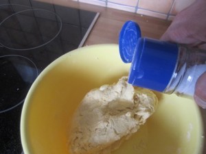 In ko bos masa pripravljena, jo pokrijte za okoli pol ure, da se testo vzhaja. |
