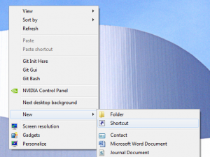 Na namizje kliknite z desnim miškinim gumbom ter ustvarite novo bližnjico (Novo - Bližnjica).