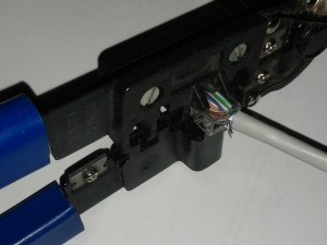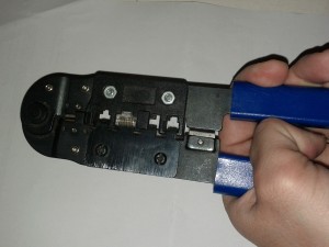 ![]() Konektor sedaj vstavimo v klešče, ki so namenjene stiskanju konektorjev. |