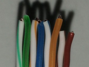 ![]() Znotraj kabla se nahaja osem žičk, ki so različno obarvane. |