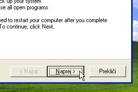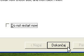 Ne označite Do not restart now in kliknite na gumb Dokončaj. Windows XP se bodo ponovno zagnali. |