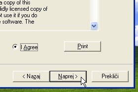 Jaz sem označil I Agree in kliknil na gumb Naprej. |