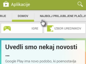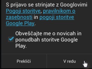 ![]() Po uspešno končanem postopku prve registracije se bo odprla aplikacija Trgovina Play. |