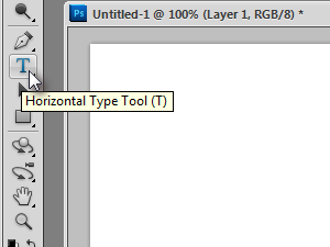 Za pisanje teksta običajno uporabljamo orodje Horizontal Type Tool, zato najprej izberemo to orodje.