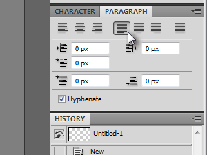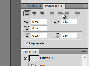 ![]() Če sedaj v oknu Character izberemo zavihek Paragraph, lahko v njem najdemo različne tipe poravnav teksta. |