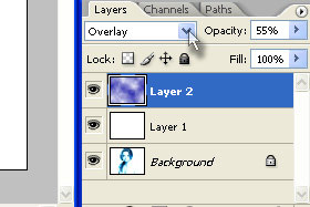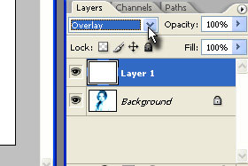 Novemu layerju, ki se je pobarval na belo barvo, določite senčenje na Overlay (glej sliko).