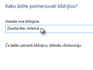 Potem še imenujte bližnjico z poljubnim imenom in kliknite na gumb Dokončaj.