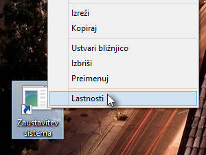 Kliknite na bližnjico z desnim miškinim gumbom in izberite Lastnosti.