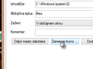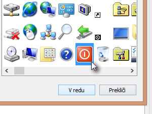Pojavi se vam opozorilo, da v datoteki ni ikon, kjer kliknete na gumb V redu ter nato v novem oknu izberete poljubno ikono in kliknete na gumb V redu.