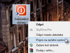 Kliknite na ikono sedaj z desnim miškinim gumbom in izberite Pripni na začetni zaslon.