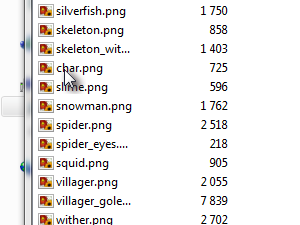 Najdite datoteko char.png in jo shranite nekam, katera ne sme biti več v mapi mob.