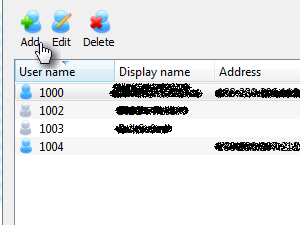 Zbrišete jih s klikom na Delete. Za dodajanje SIP uporabnika kliknite Add. |