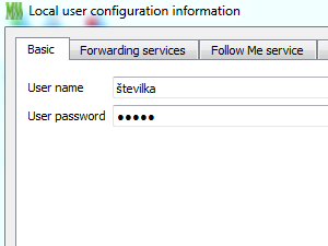 Uporabniško ime velja kot številka na katero boste klicali. Po potrebi uredite tudi druge funkcije. Nastavitve shranite s klikom na OK. |