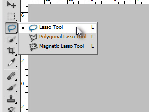 Držite z miško na orodju Lasso Tool (bližnjica je tipka L) toliko časa toliko časa, dokler se ne prikažejo ostala orodja.