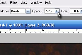 Zgoraj v orodni vrstici določite Opacity na okoli 50% (glej sliko).