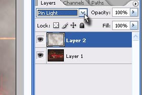 Določite layerju z "meglo" senčenje na Pin Light (glej sliko).
