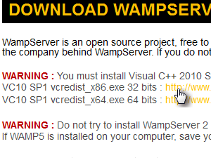 ![]() Na strani WAMP sedaj kliknite povezavo za prenos strežnika WAMP. |