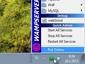 ![]() Sedaj zopet kliknite WAMP ikono in izberite Localhost. |
