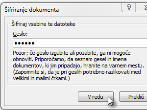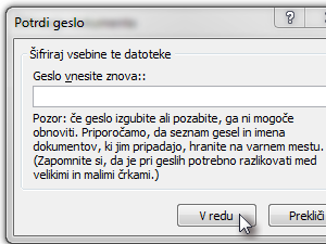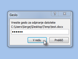 ![]() V primeru vnosu pravilnega gesla pa se bo dokument normalno odprl. |