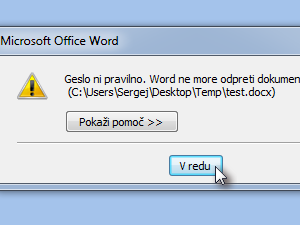 ![]() V kolikor vneseno geslo ne bo pravilno, bo Word zavrnil dostop do dokumenta. |