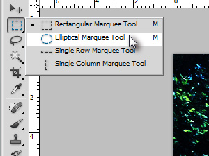 Držite z miško na orodju Rectangular Marquee Tool (bližnjica je tipka M) toliko časa, dokler se vam ne prikažejo ostala orodja.