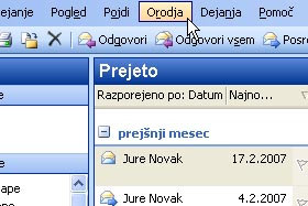 Spet se nahajate v glavnem oknu Outlook-a.