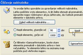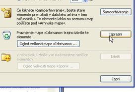 Odpre se okno Čiščenje nabiralnika.