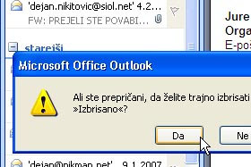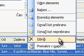 Kliknite na označena sporočila z desnim miškinim gumbom in izberite Izbriši. Zaprite okno. |