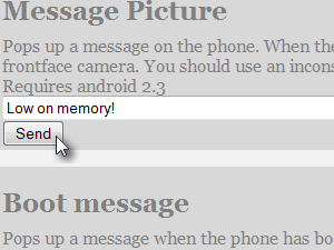 V polje vpišite poljubno sporočilo, ki se bo prikazalo uporabniku in kliknite gumb Send. |