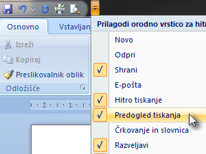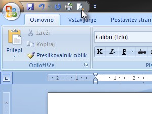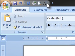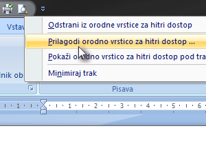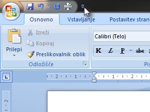 Orodna vrstica za hitri dostop se nahaja povsem na vrhu Word okna.