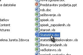 Jaz sem označil Word datoteko, ki se nahaja v mapi Moji dokumenti.