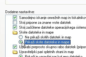 V mapi se prikažejo še ostale skrite mape in datoteke.