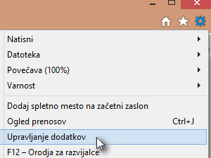 Kliknite na ikono za nastavitve ter izberite Upravljanje dodatkov.