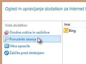 V novem oknu označite Ponudniki iskanja.