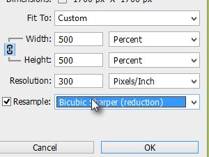 Sedaj pa v istem oknu Resample nastavite Bibubic Sharper (reduction), ki predstavlja nastavitev, ki je bila v prejšnjih različicah Photoshopa.
