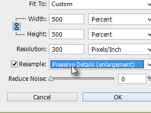 Sedaj pa Resample nastavite Preserve Detail (enlargement).