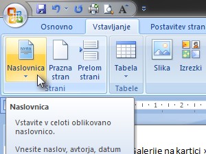 Naslovnica v Wordu |