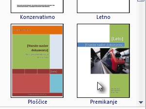 ![]() Word vam bo ponudil možnost več različno oblikovanih naslovnic. |