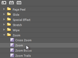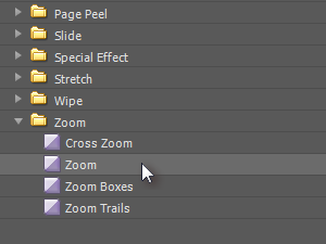 Da boste "odzumirali" besedilo, odprite zavihek Effects ponovno, odprite Video Transitions, Zoom in z miško držite Zoom ...