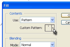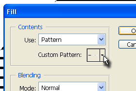 Kliknite še enkrat na Edit in izberite Fill... V polju Use izberite Pattern in potem preko polja Custom Pattern določite horizontalo (ki ste jo prej ustvarili). Kliknite na gumb OK. |