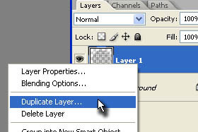 Duplicirate layer tako, da kliknete na prej ustvarjen layer z desnim miškinim gumbom in izberite Duplicate Layer...