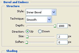 Kliknite na Layer, Layer Style in izberite Bevel and Emboss... Depth določite 1000 % in Size 2 px. Ne zaprite še okna... |