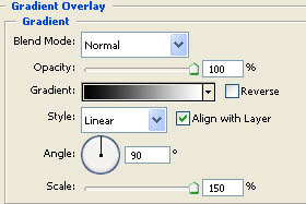Ponovili bomo postopek... Kliknite na Layer, Layer Style in izberite Bevel and Emboss... Depth določite 1000 % in Size 2 px. V istem oknu določite spodaj Opacity 50 %. Ne zaprite še okna... Na levi strani kliknite na Gradient Overlay. Nove možnosti se prikažejo. Scale določite 150 % in kliknite na gumb OK. |