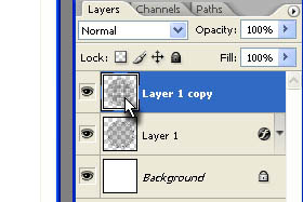 Sedaj izberite zgornji duplicirani layer (glej sliko).